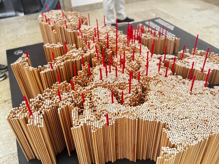 Über dem Deutschen Pavillon schwebt ein Schwarm rot-weiß gestreifter Windsäcke – filigran, sensibel, immer in Bewegung. Die kinetische Installation von Christoph Brech reagiert auf jede noch so feine Luftveränderung & macht sichtbar, was uns oft entgeht: die Dynamik klimatischer Prozesse & ihr Impact auf uns.